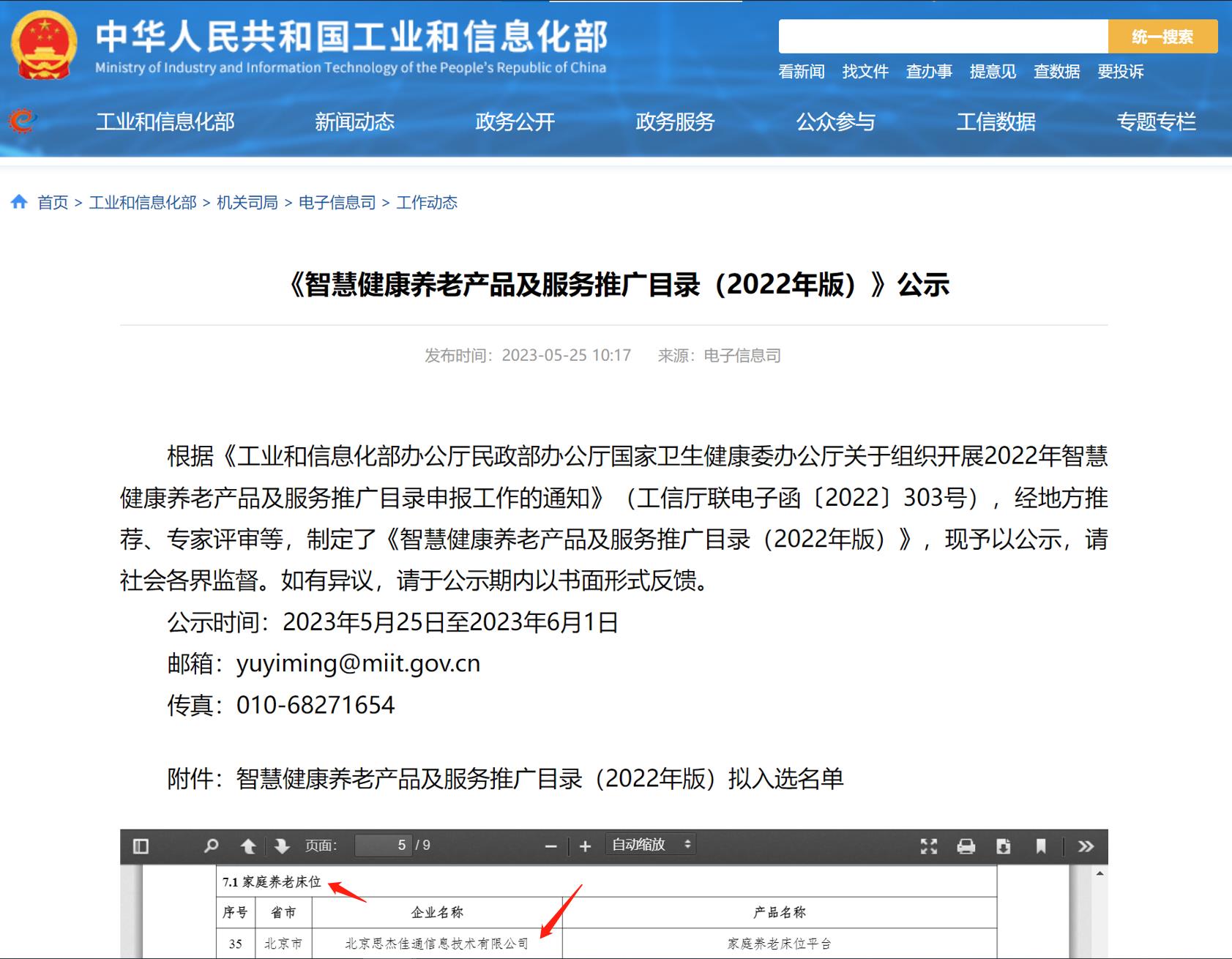 杰佳通家庭養(yǎng)老床位平臺(tái)入選國家三部委《智慧健康養(yǎng)老產(chǎn)品及服務(wù)推廣目錄(2022年版)》